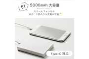 5000mAh 大容量で、スマートフォンなら約2、3回のフル充電が可能です。
