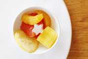 グレープフルーツ、パイナップル、レモンなどビタミンたっぷりのフルーツが入ったピクルス。一人暮らしの子どもも喜ぶ、おしゃれで健康的なギフトです。