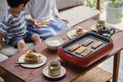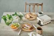PEANUTSキャラクターの焼き目が付いたホットサンドが作れます。耳を切らずにのせられる大きめのプレートとタイマー式で、忙しい朝も時短で簡単!シングルサイズは、上下にスヌーピーとチャーリー・ブラウンの焼き目がつけられるプレートが付属します。