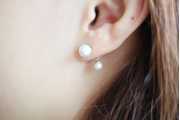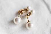 一粒のパールと対になっているので、つける側によって2種類のデザインを楽しむことができます。