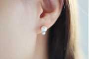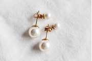 大小の貝パールをあしらった、シンプルなデザインのピアス。