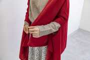 「nico」は長方形のニット地の両端に2個スリットの入った羽織タイプのポンチョです。首元から二の腕までをしっかりと覆い、気温の変化が大きい秋の体温調整に効果的です。また首に巻くなど、シーンによって使い分けができます。