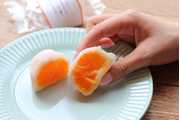 ぜひとも目をつぶって、みかん大福をそのままお召し上がりください。