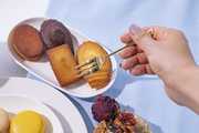 行列のできるシュークリーム専門店「クレーム デ ラ クレーム」がお届けする、フルーツなどをトッピングした色鮮やかなシューアイス。