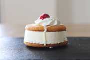 行列の出来るシュークリーム専門店「クレーム デ ラ クレーム」のシューアイスで、2段のクリームとフルーツがとっても美味しく、フルーツのシャキっという食感がまた良いんです!