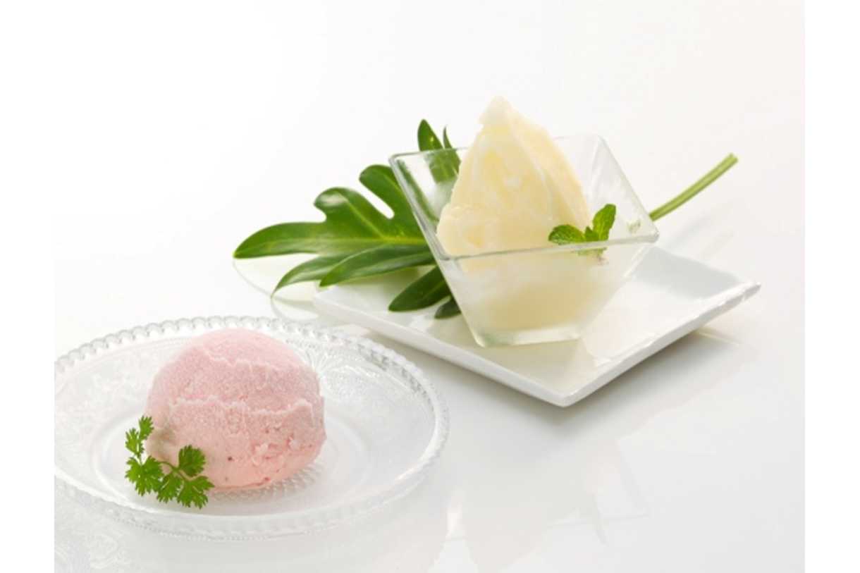 新潟の特産品の一つにあげられる西洋梨「ル レクチエ」を使用したなめらかな食感で香り高く仕上げたシャーベット、新潟県産のいちご(越後姫)を相性の良い練乳と混ぜ、素材の良さを生かした甘くて、コクのあるアイスクリームの嬉しい2種詰合せです。