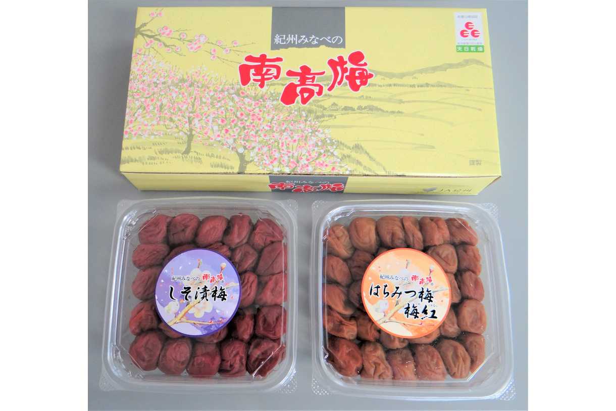 果肉が厚く、皮が薄く、香りがよい南高梅を昔ながらの酸味のある味わいのしそ漬とまろやかに仕上げたはちみつ漬け梅干を食べ比べいただけるようセットにいたしました。日本一の南高梅の生産量と質を誇る南高梅生誕の地みなべ町からお届けいたします。