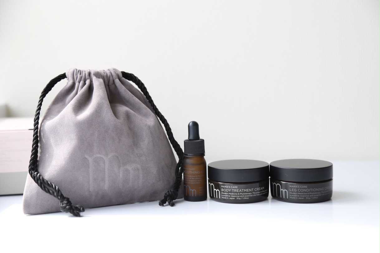 お腹が大きくなる妊娠16週頃から使える「ボディトリートメントクリーム」に、大きくなったお腹に圧迫されて鬱血する脚のケアを目的とした「レッグコンディショニングクリーム」……。
