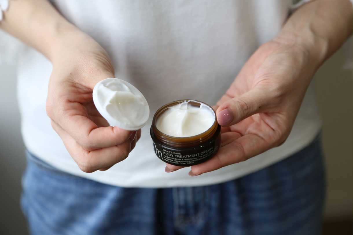 今回のキットには、お腹の中の赤ちゃんの成長に合わせた体の変化を助ける2種類のクリームが入っています。