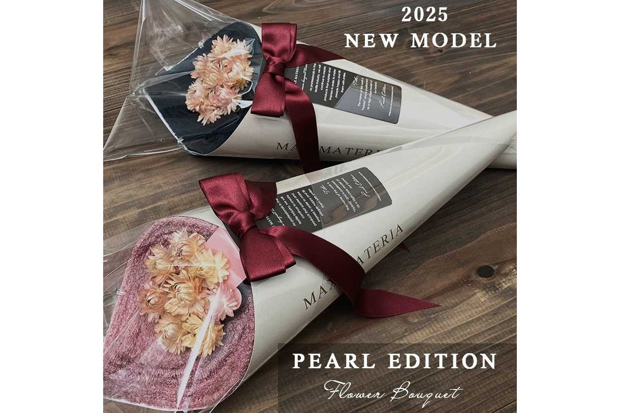 MAXMATERIA花束タオルのパールエディション。【いつまでも続く幸せ】という花言葉のエバーラスティングドライと高級タオル。
