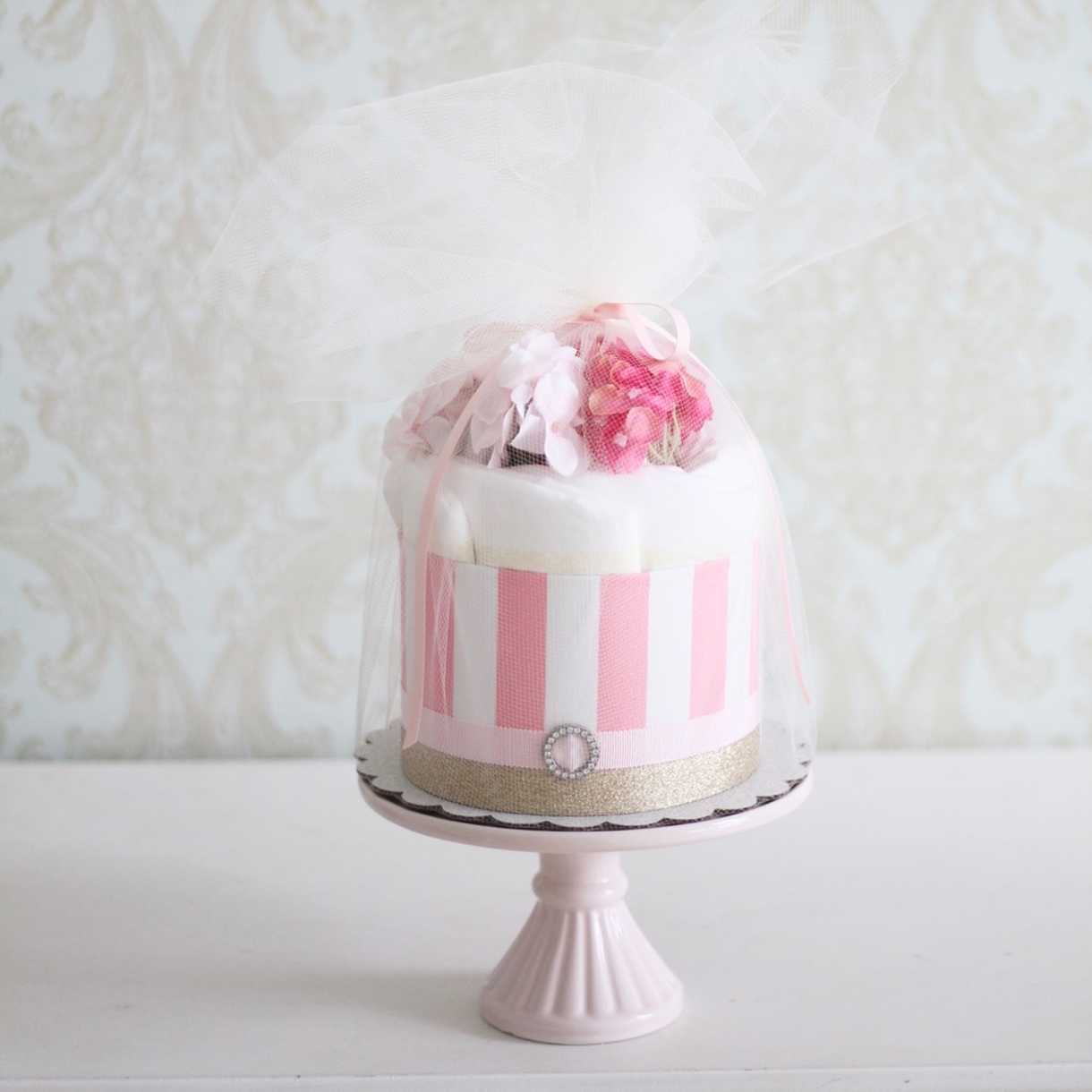 「花束のように」をテーマに、プレママ、ママへの癒しや労いを贈るダイパーケーキ。