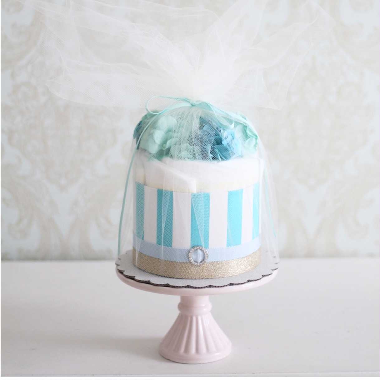 木のアクセサリー付きおむつケーキ 2段 ミント