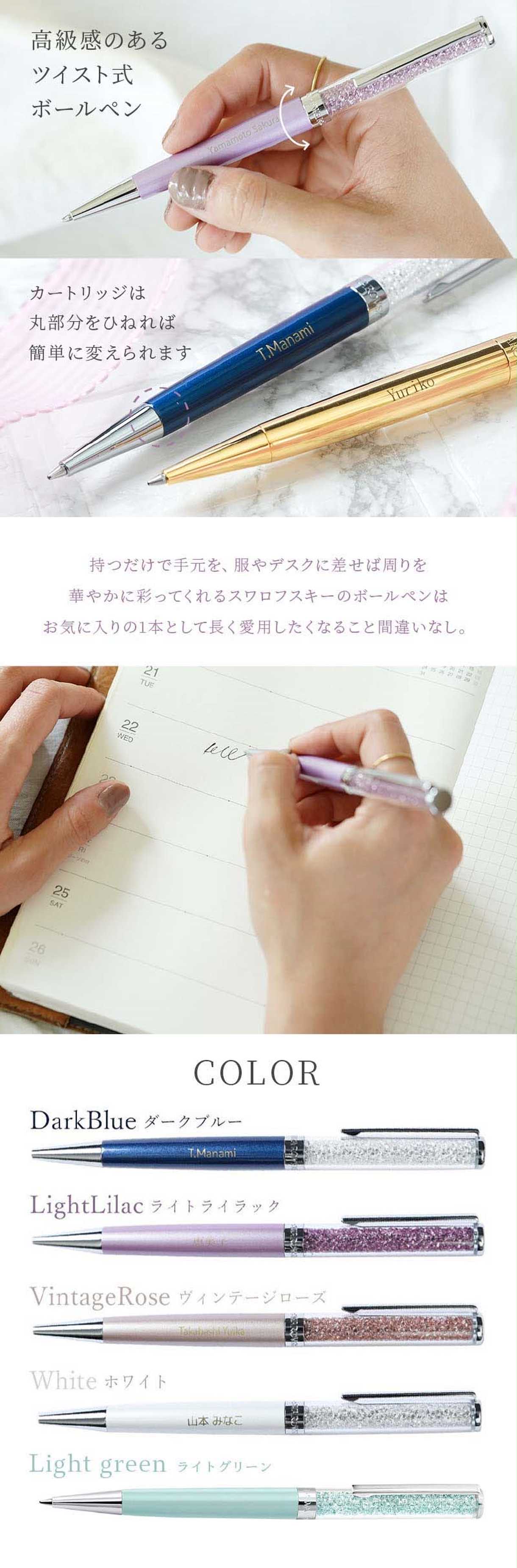 繊細なクリスタルが上品な輝きをもたらす名入れボールペン。 お渡し用にうれしい、公式ショッパー付き。