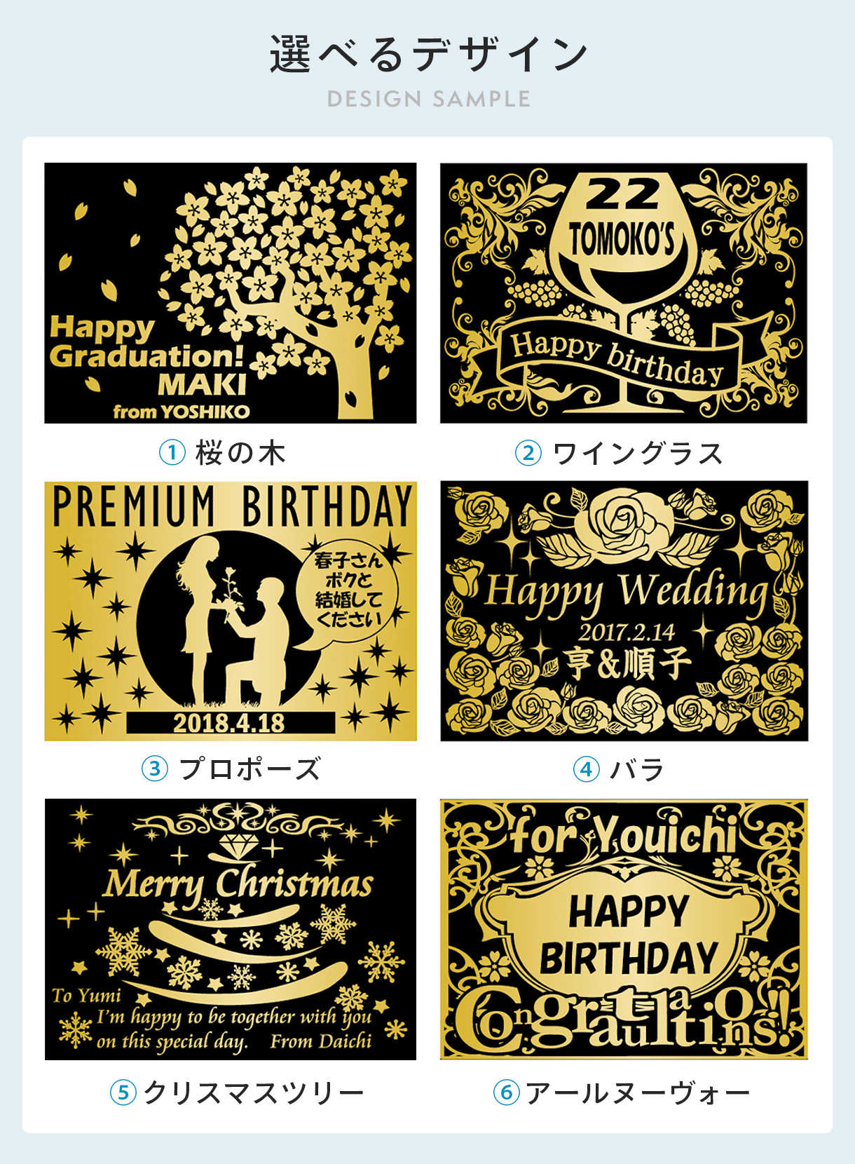 メッセージ、名入れ彫刻対応で世界に一つだけのオーダーメイド制作です。