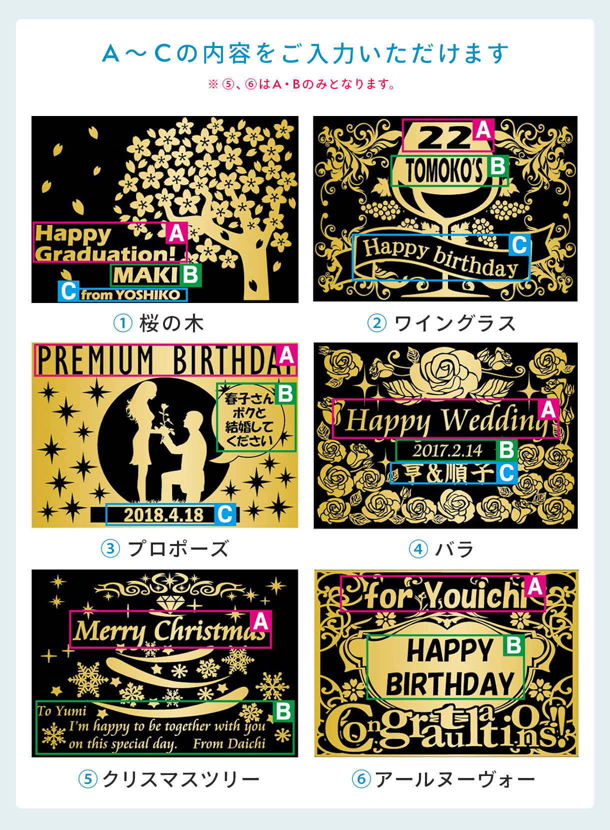 1.デザイン(①〜⑥)を選択