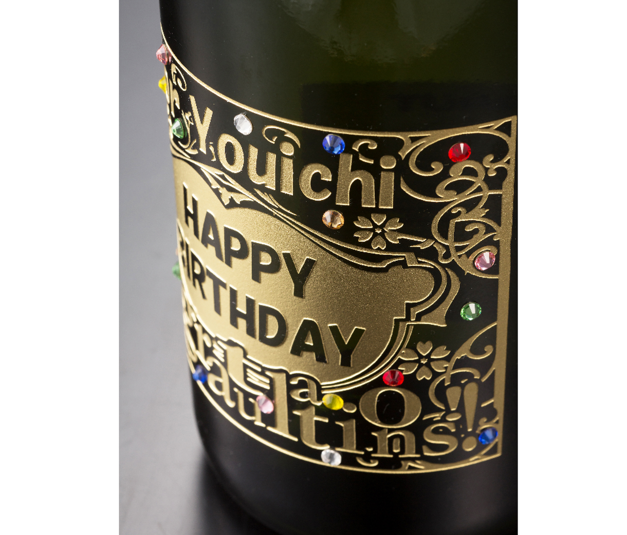 オリジナルのデザインをスパークリングシャンパンボトルの彫刻!SWAROVSKIオプション付きの贅沢ボトル。