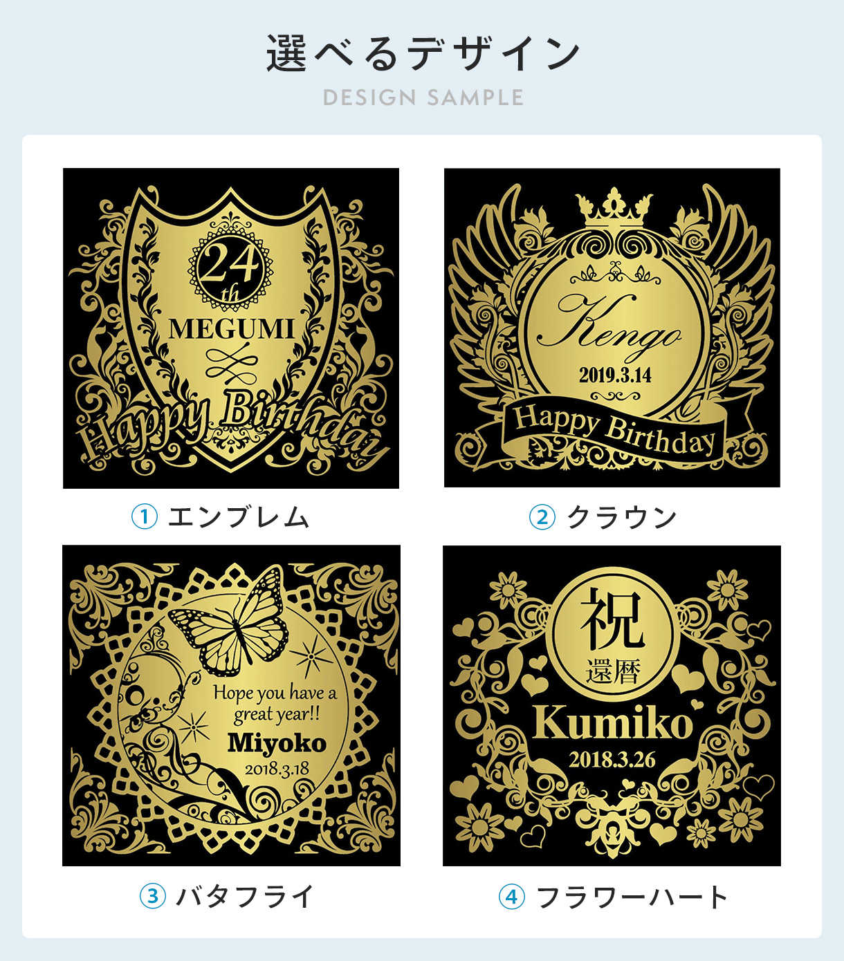 様々なシーンに対応、選べるデザイン全4パターンをご用意。
