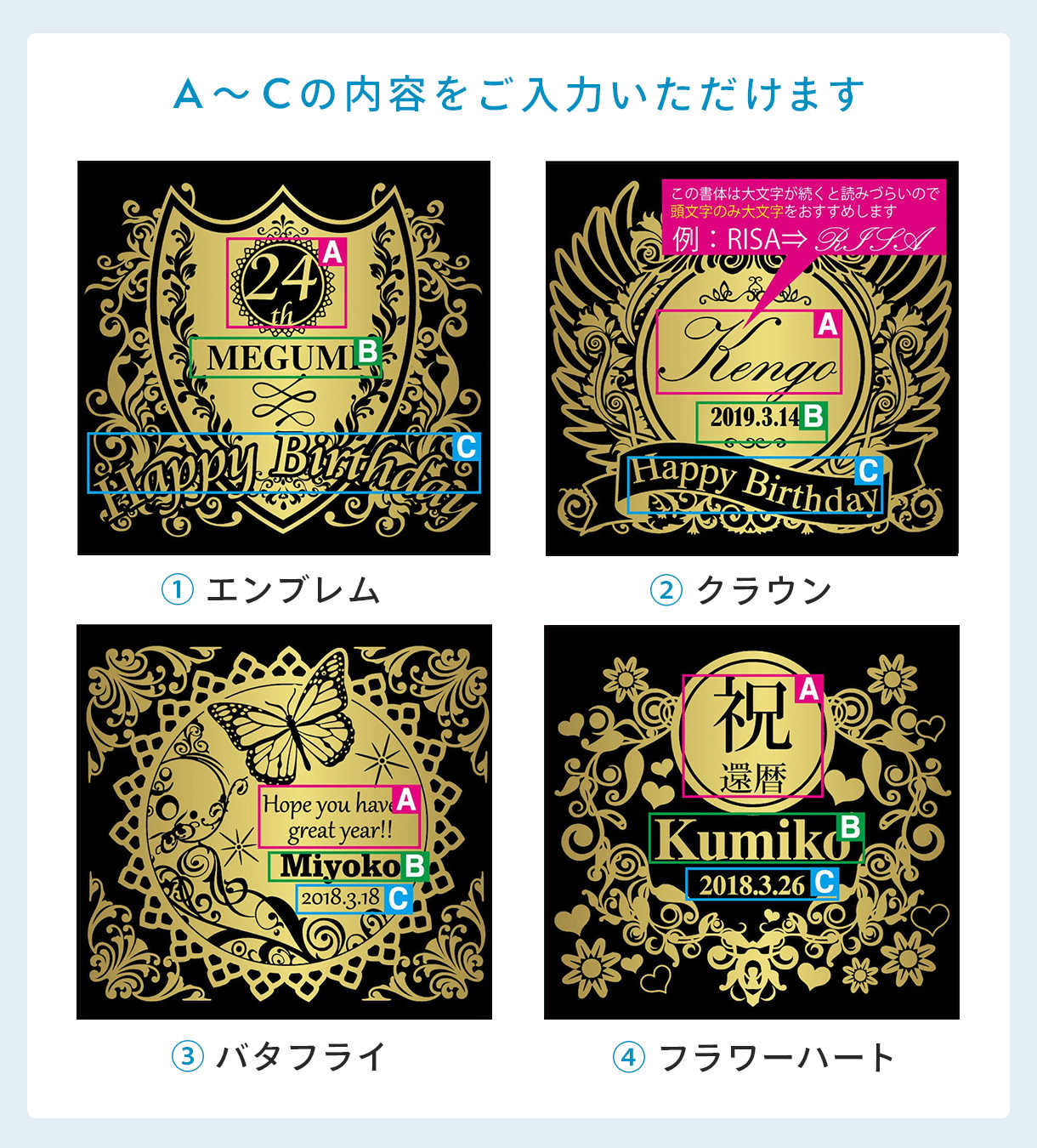名入れ商品について:名入れが不要の場合は入力欄に「名入れ不要」とご入力下さい。