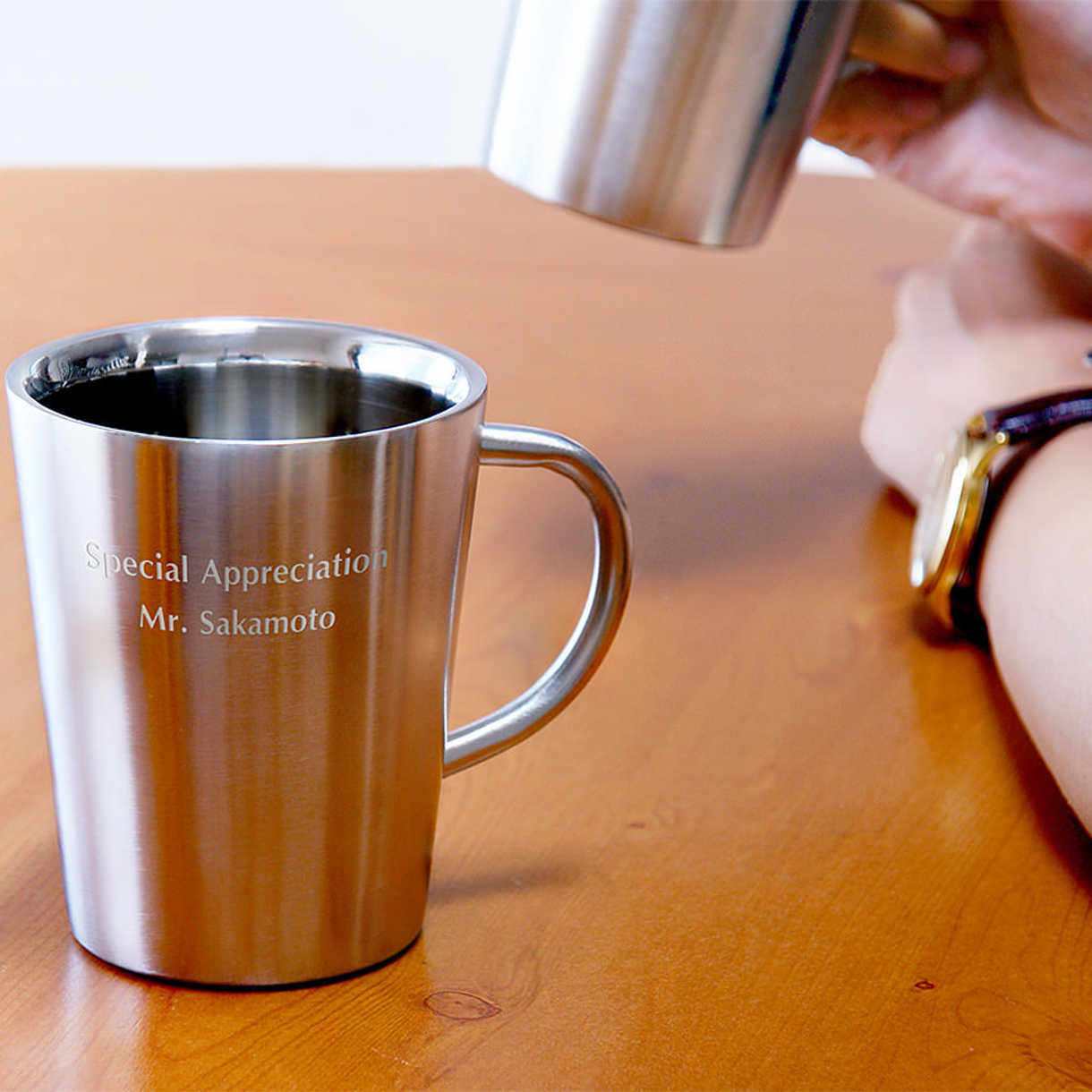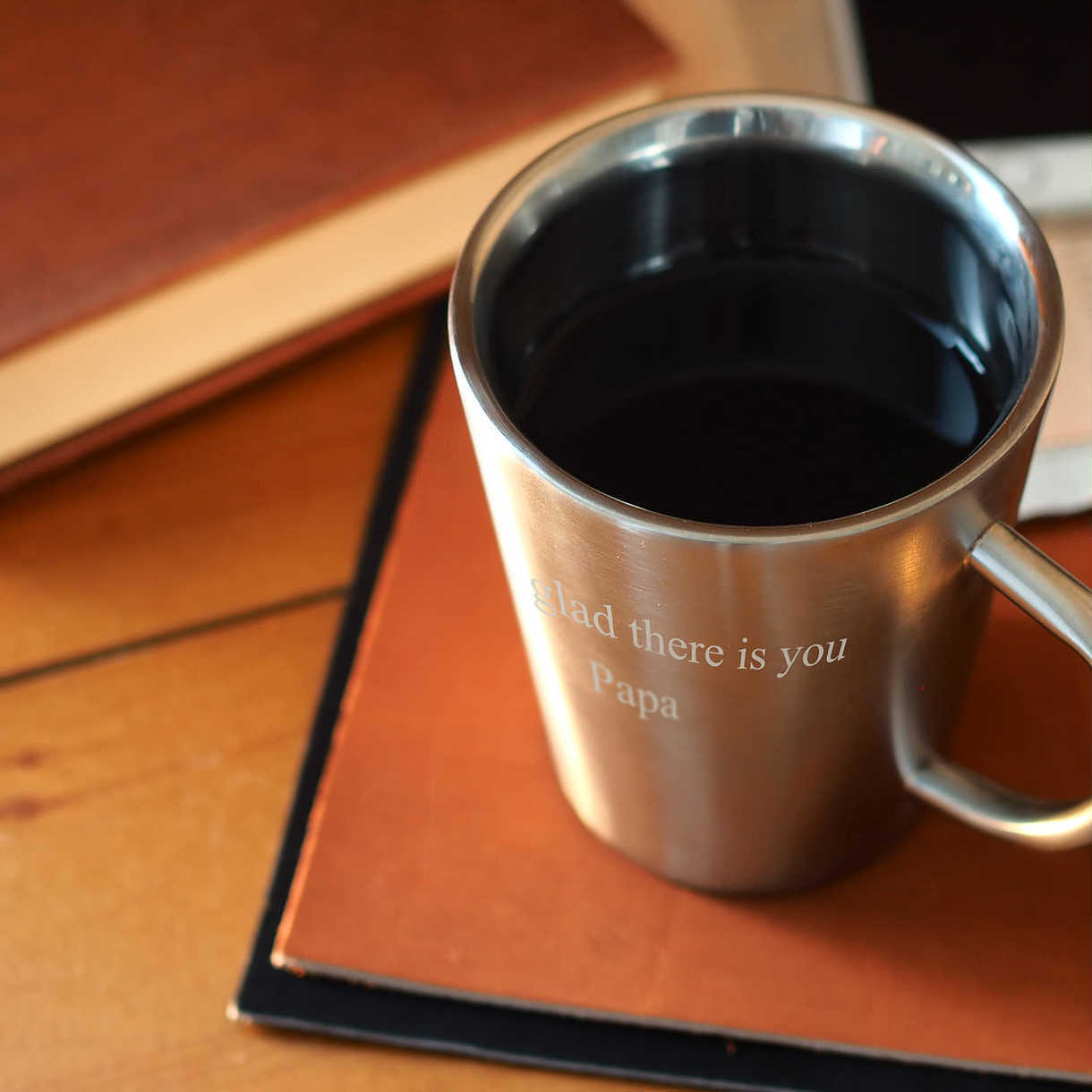 毎日使うものだから、使うたびに笑顔になるメッセージを入れて。世界に一つのステンレスペアマグカップ。