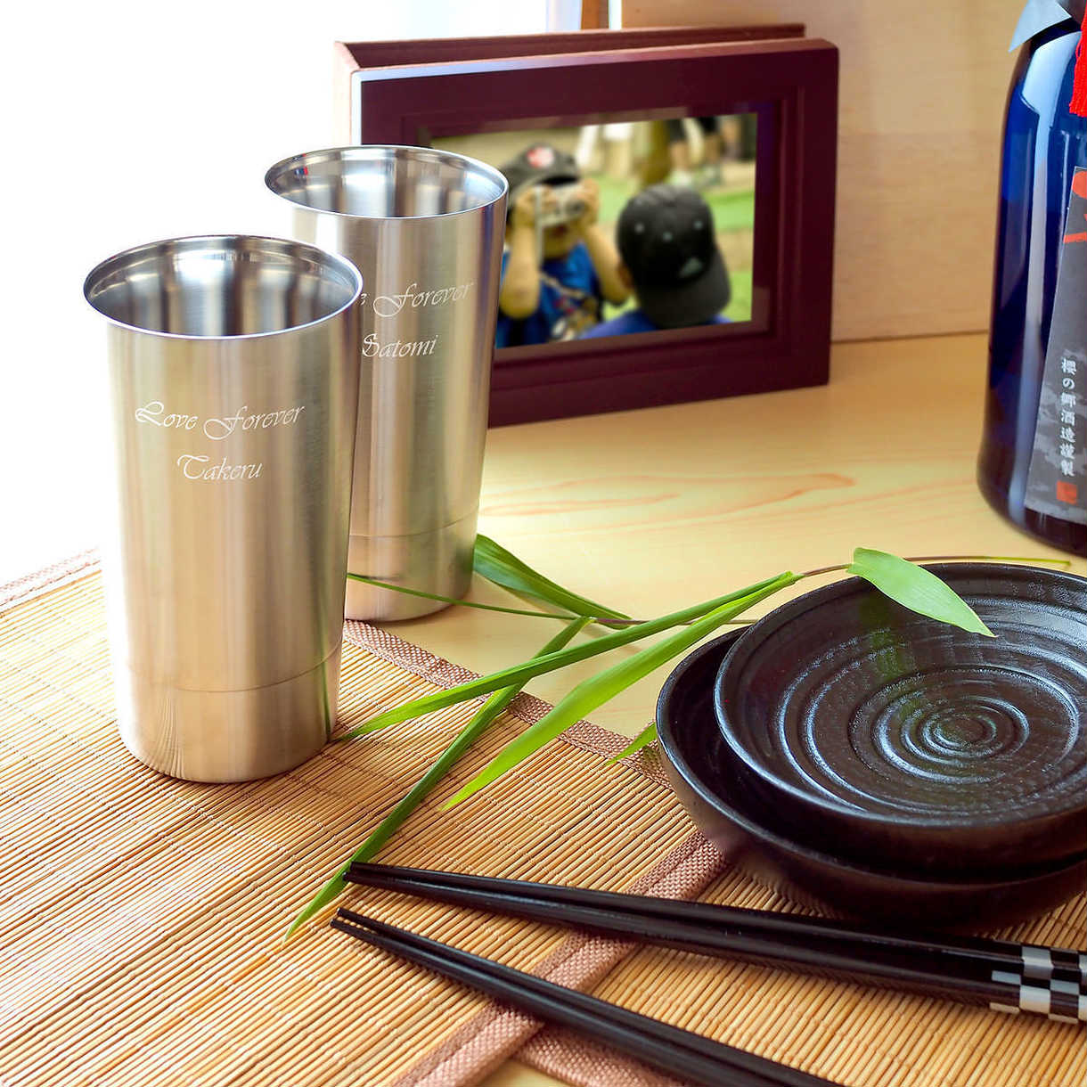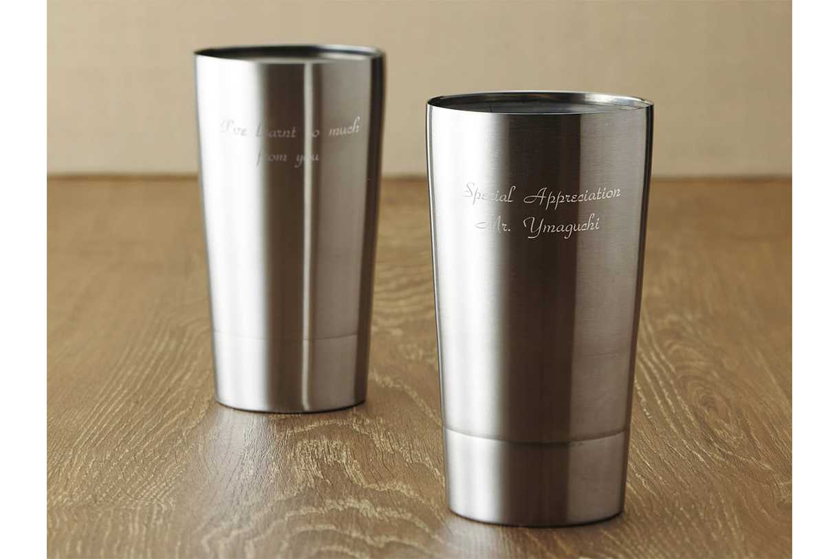 毎日使うものだから、使うたびに笑顔になるメッセージを入れて。世界に一つのステンレスハイボールのペア。