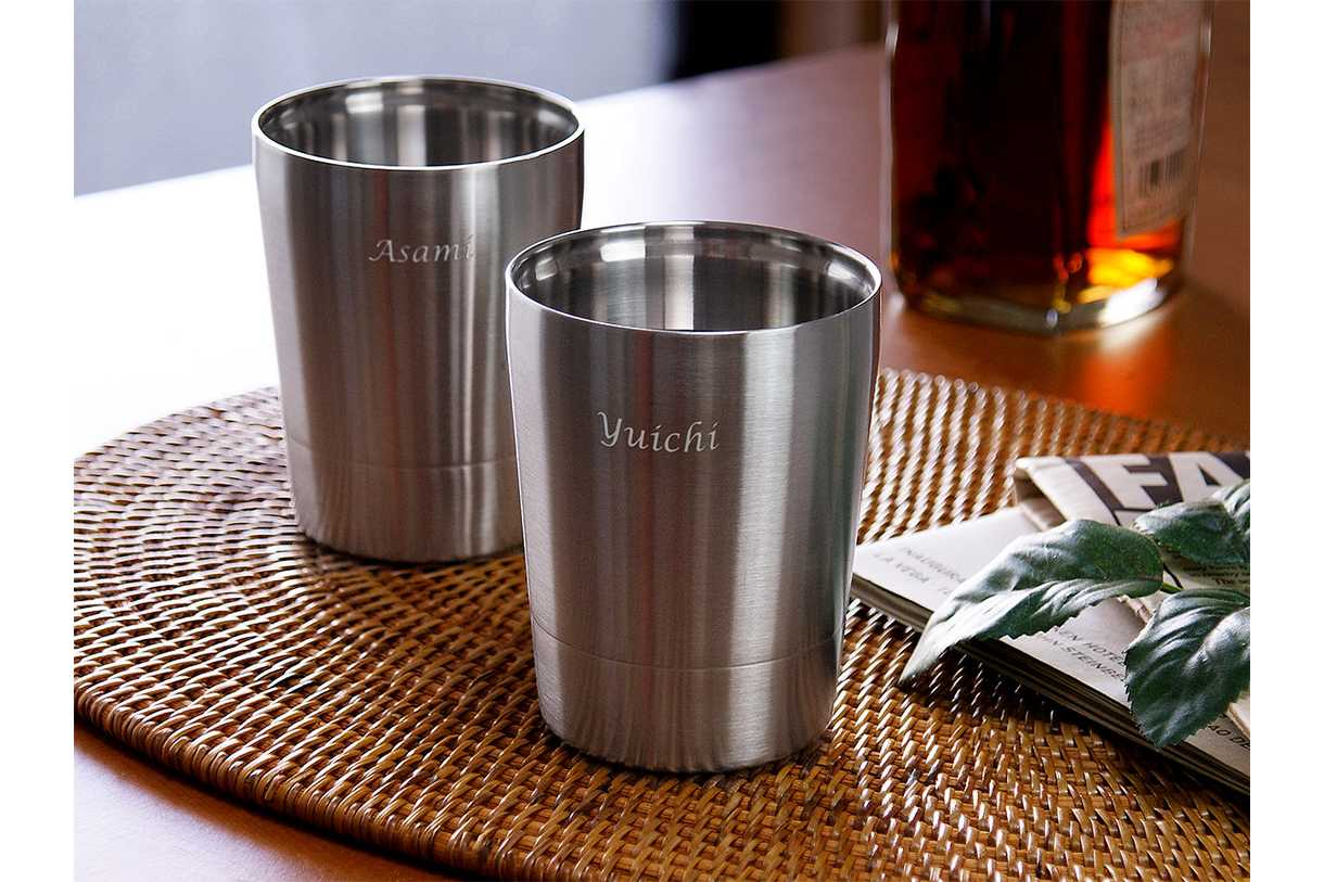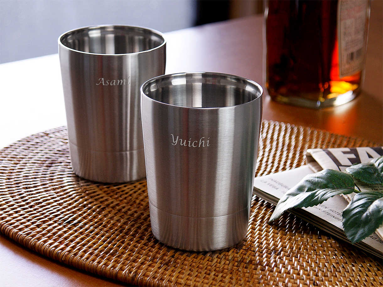 毎日使うものだから、使うたびに笑顔になるメッセージを入れて。世界に一つのステンレスロックのペア。
