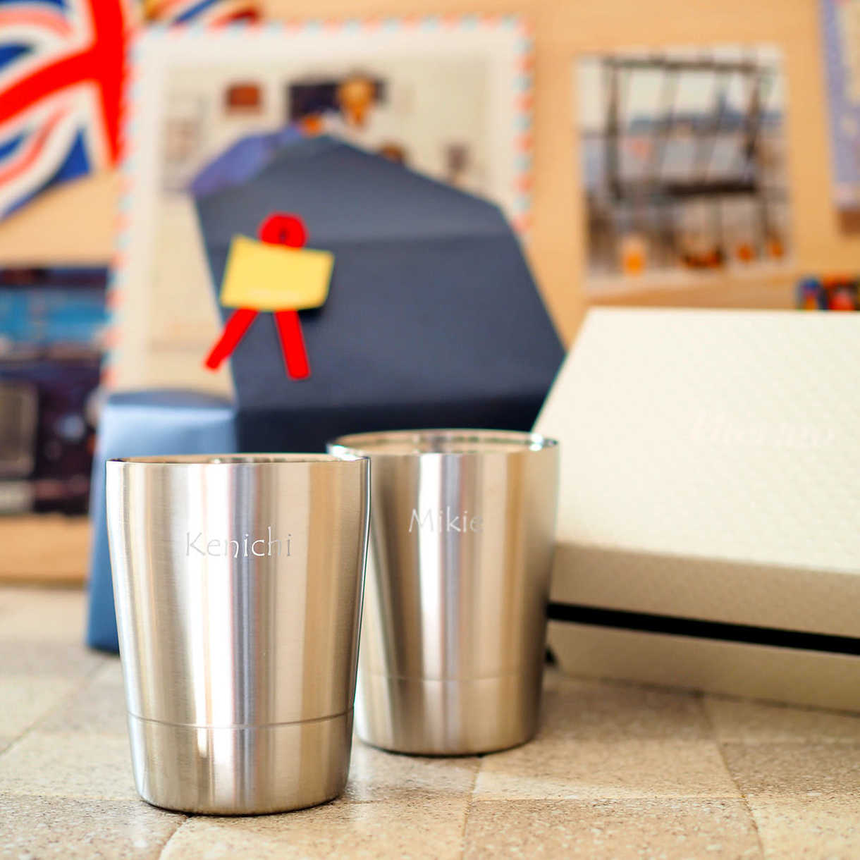 カップの側面には、名前やメッセージの刻印を入れることができます。