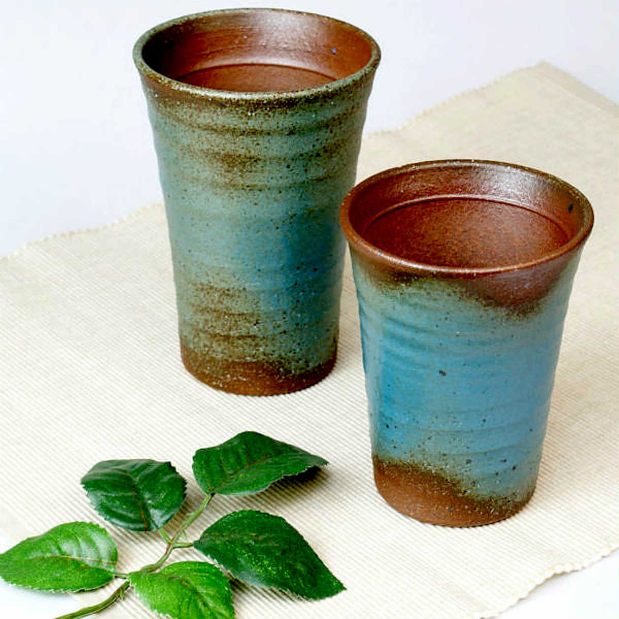 夜空の晩酌セットのカップは、伝統ある信楽焼で、とても珍しい色合い「青碧」を表現した一品。