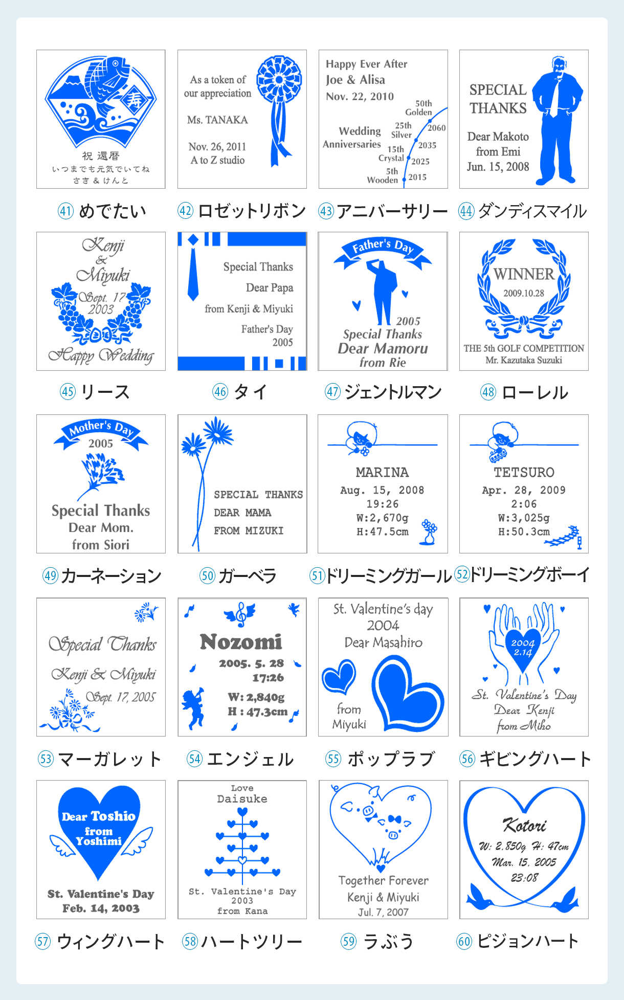 お選びいただいたデザインと一緒にメッセージをお入れします。