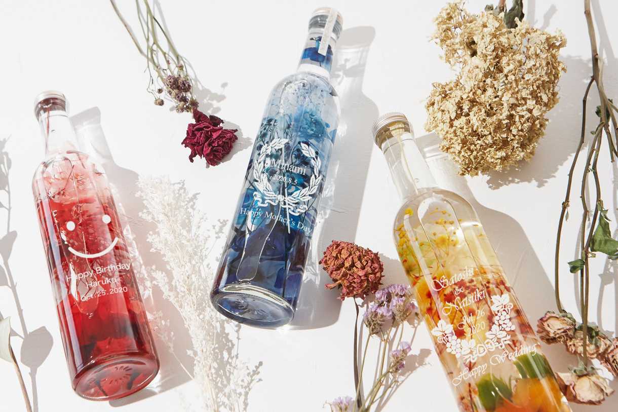 中でも特別なプレゼントには、華やかにアレンジされたハーバリウムに記念のメッセージを入れたオリジナルボトルを用意しませんか?