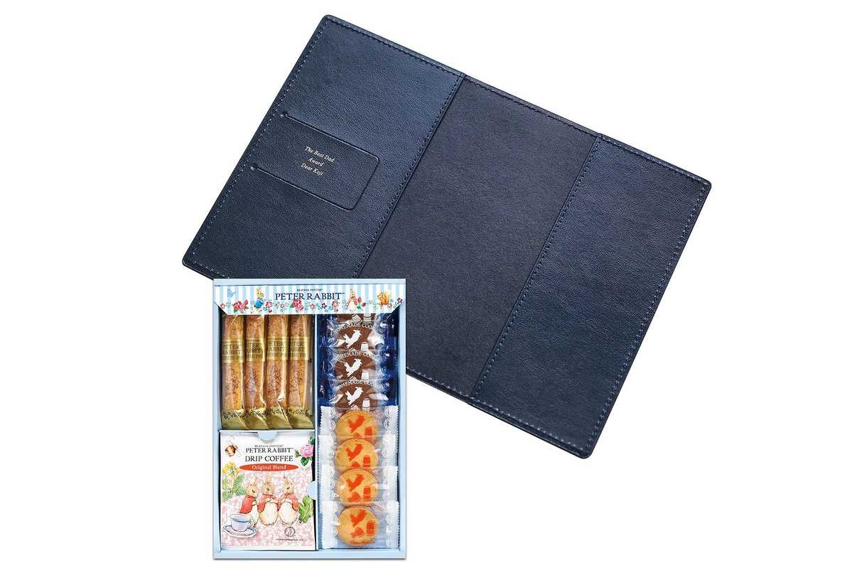 シンプルで手触りの良いレザーブックカバーとコーヒー&スイーツのセットです。