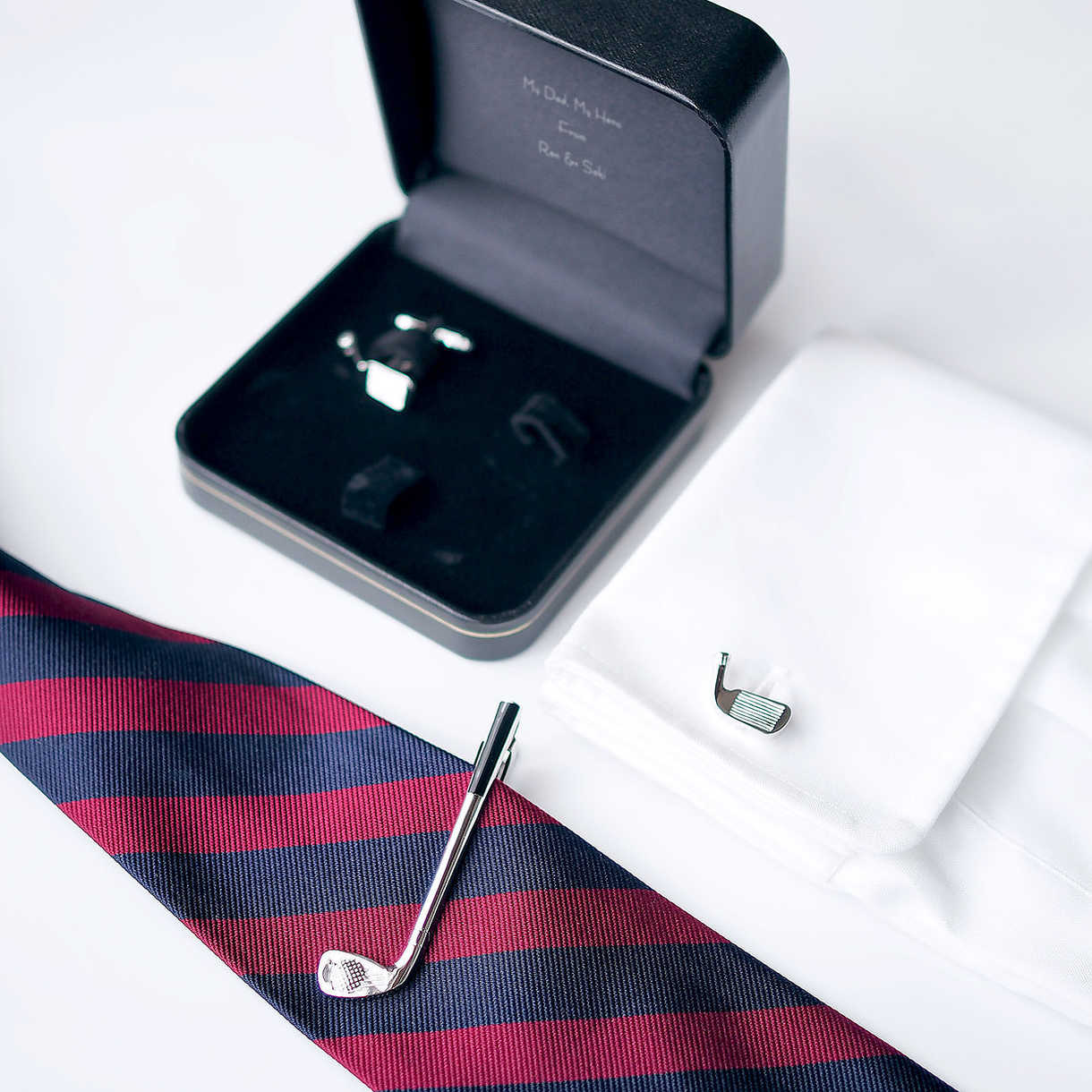ゴルフクラブのネクタイピンとカフスボタン。ゴルフ好きな男性にぴったり。