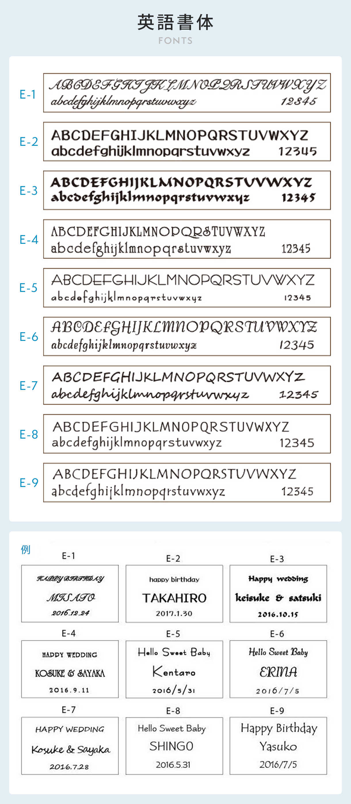 ご希望のフォントを一つ、オプションよりご選択ください。