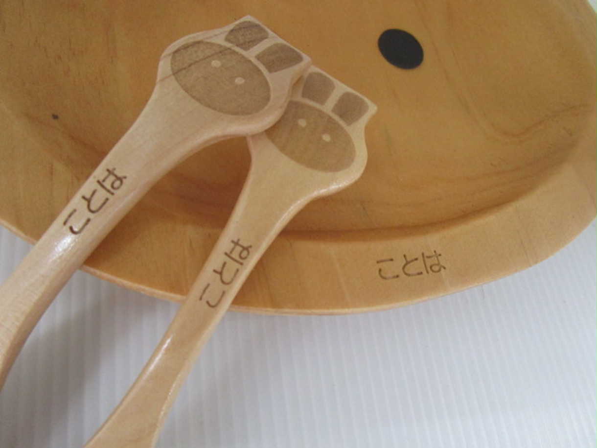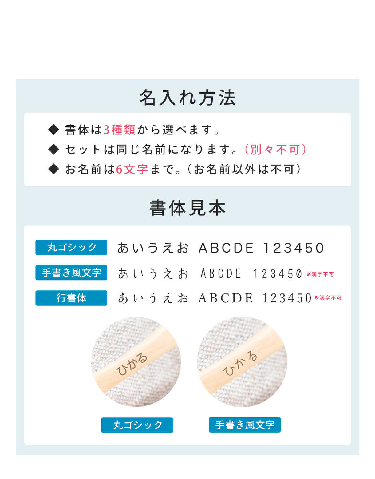 ・プレート表面、スプーン、フォークに同じお名前(それぞれ6文字まで)が入ります。
