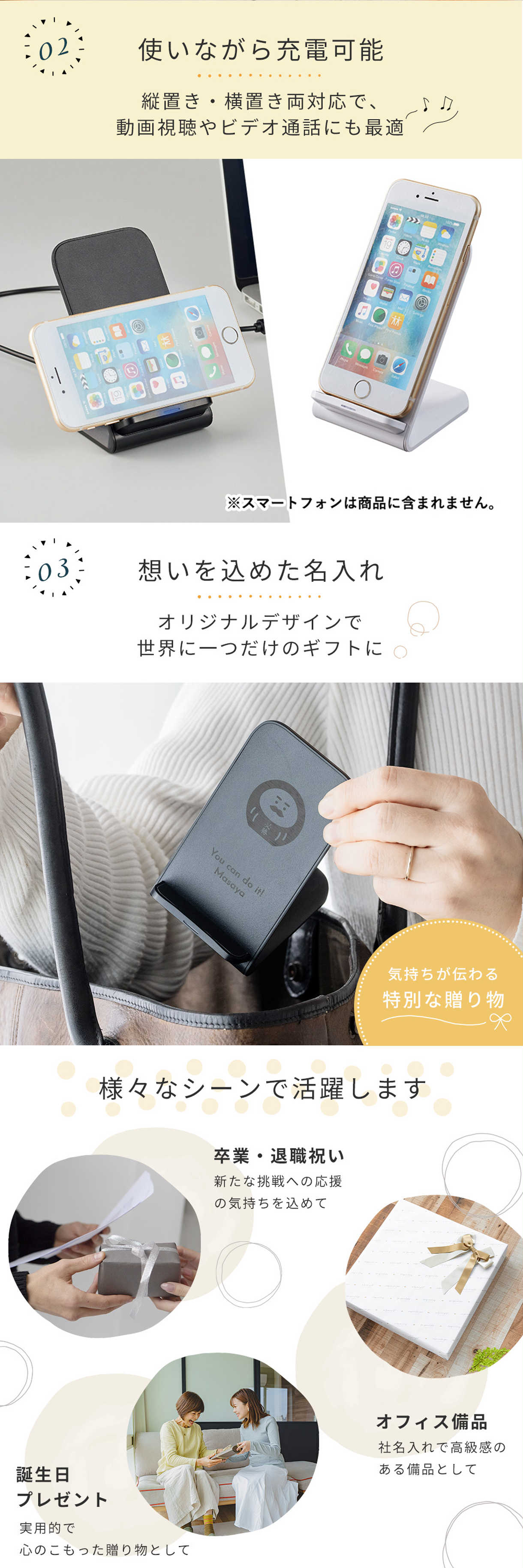 この名入れワイヤレス充電スタンドは、便利さと大切な人への想いを同時に贈ることができる特別なギフトです。
