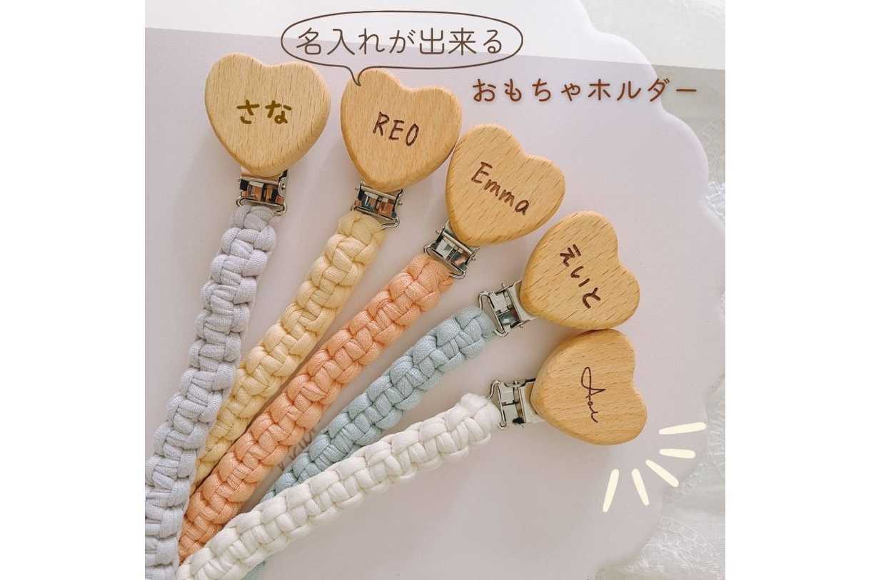 クリップ(木製部分)にお名前を刻印します。専用の機械で焼き入れますので洗ってもとれません♪