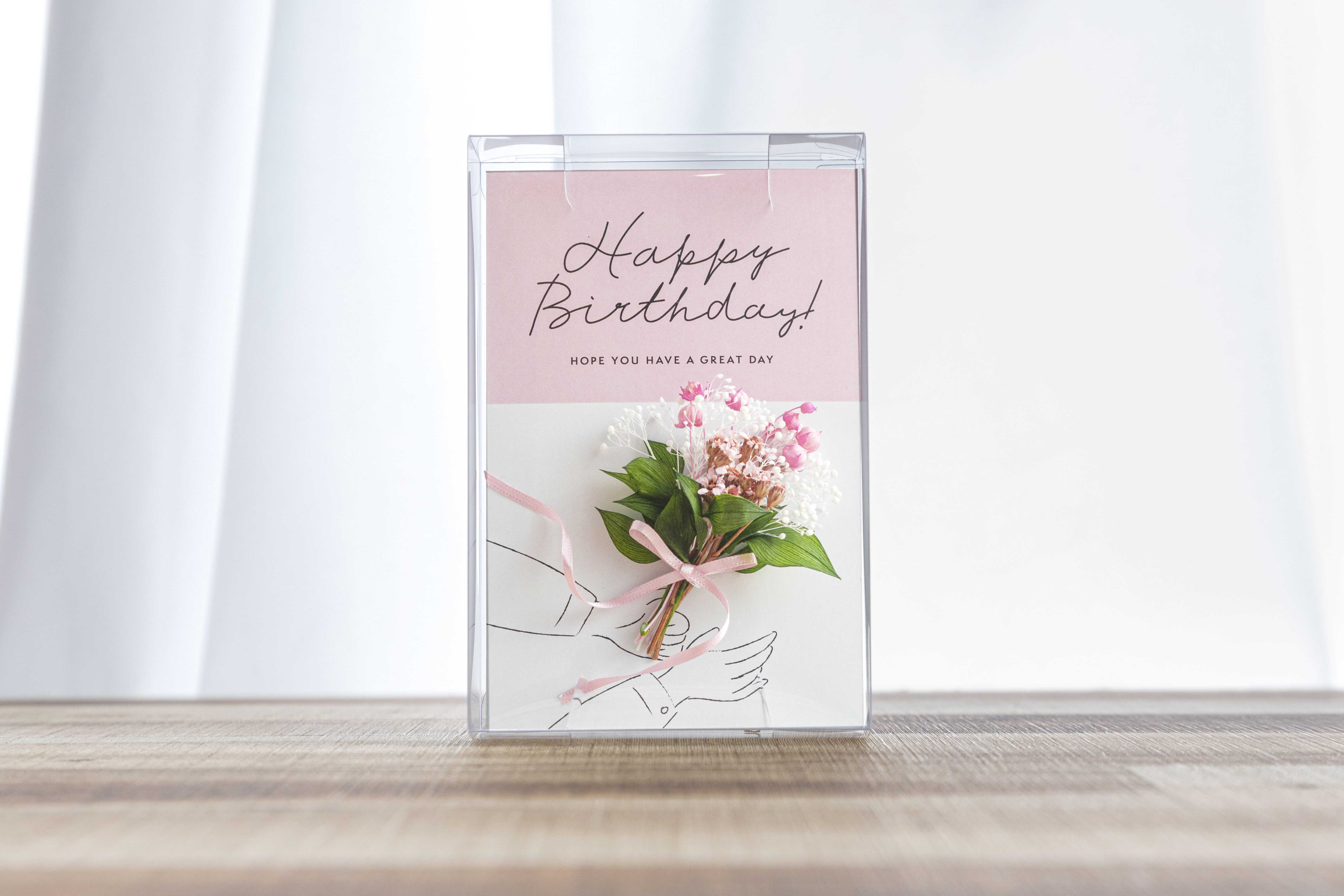 メッセージとミニブーケを一緒に送れるグリーティングカードです。