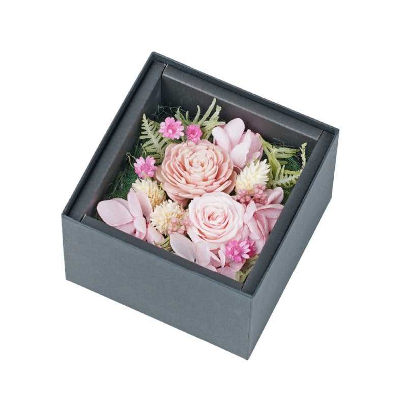 小さめサイズが可愛いプリザードフラワーBOX。贈り物に添えると一気に華やかなプレゼントに。