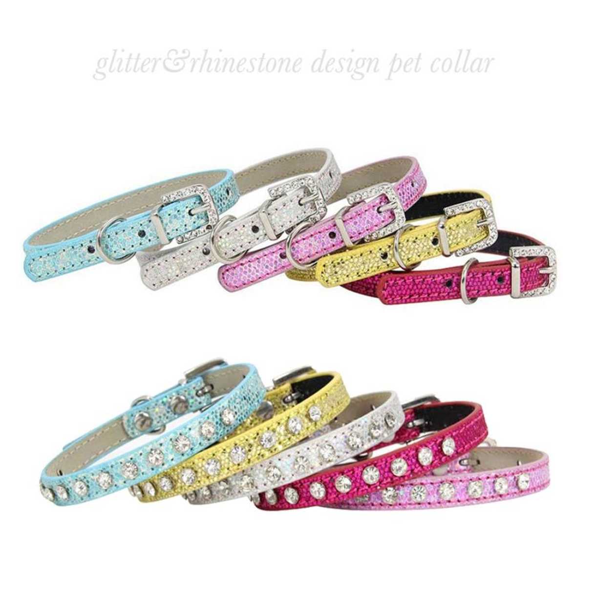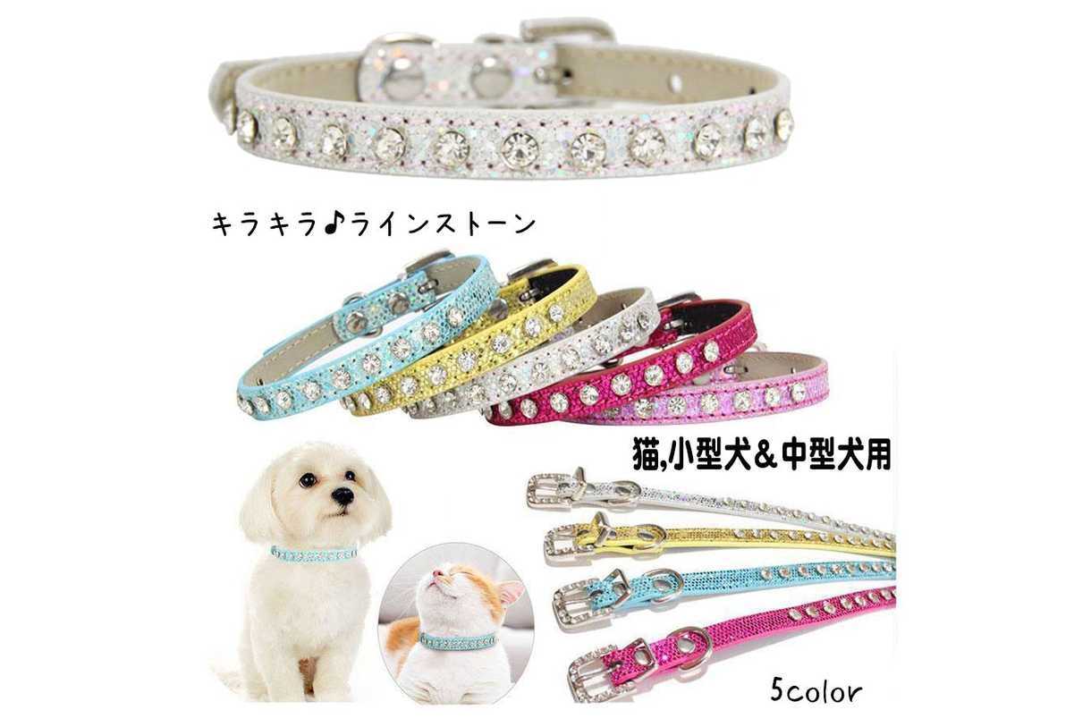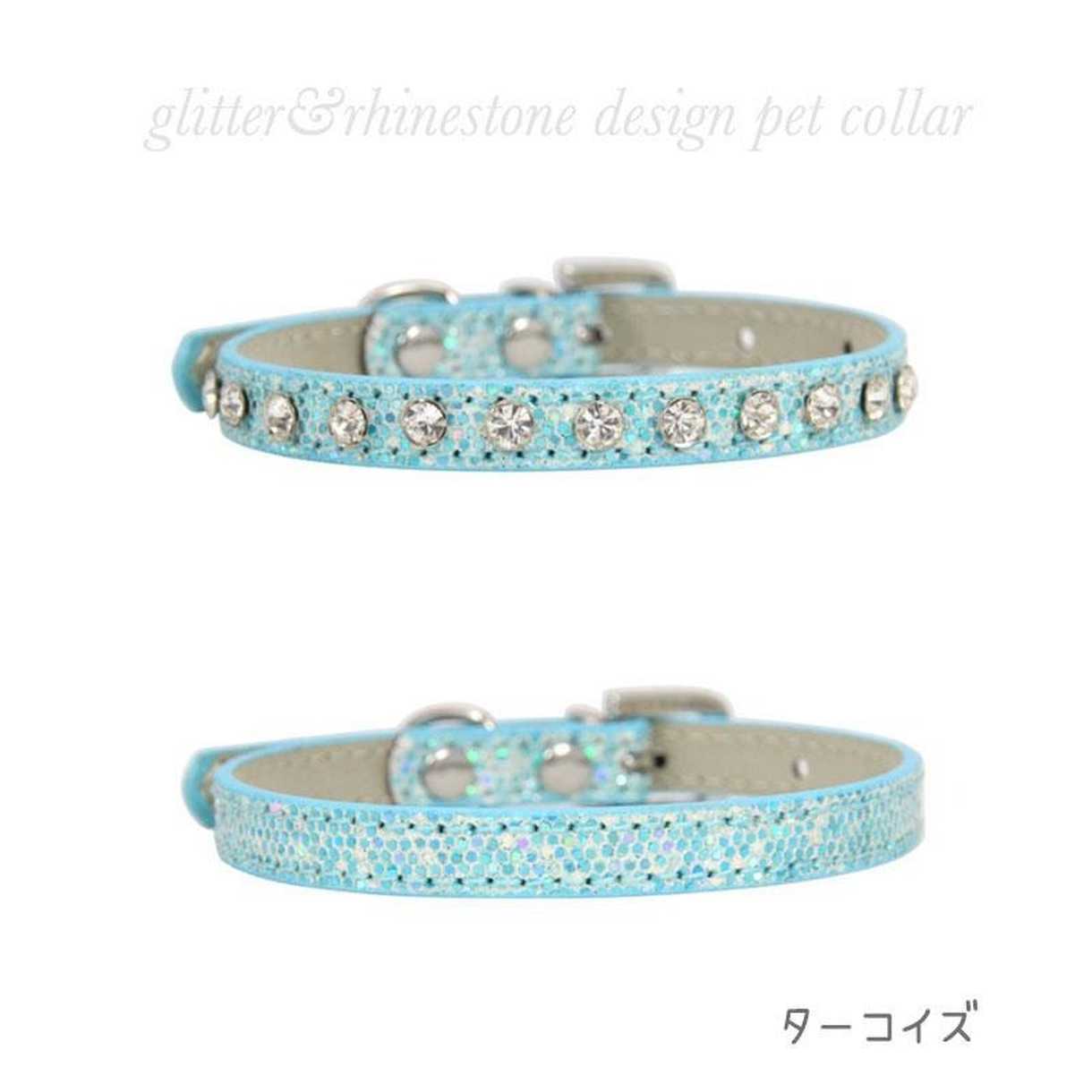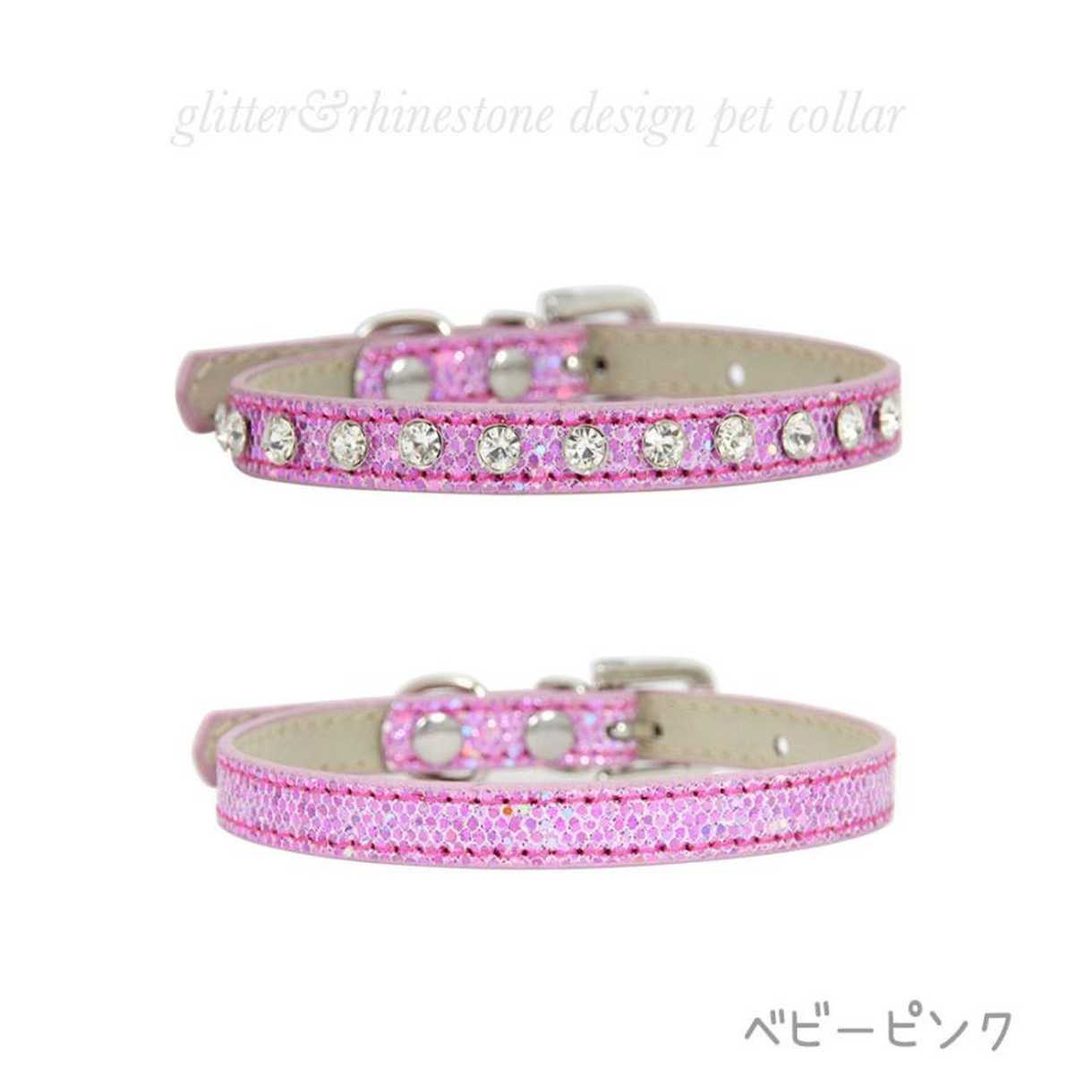 キラキララインストーン&グリッターデザインがCuteな♪猫,小型&中型犬用レザー首輪