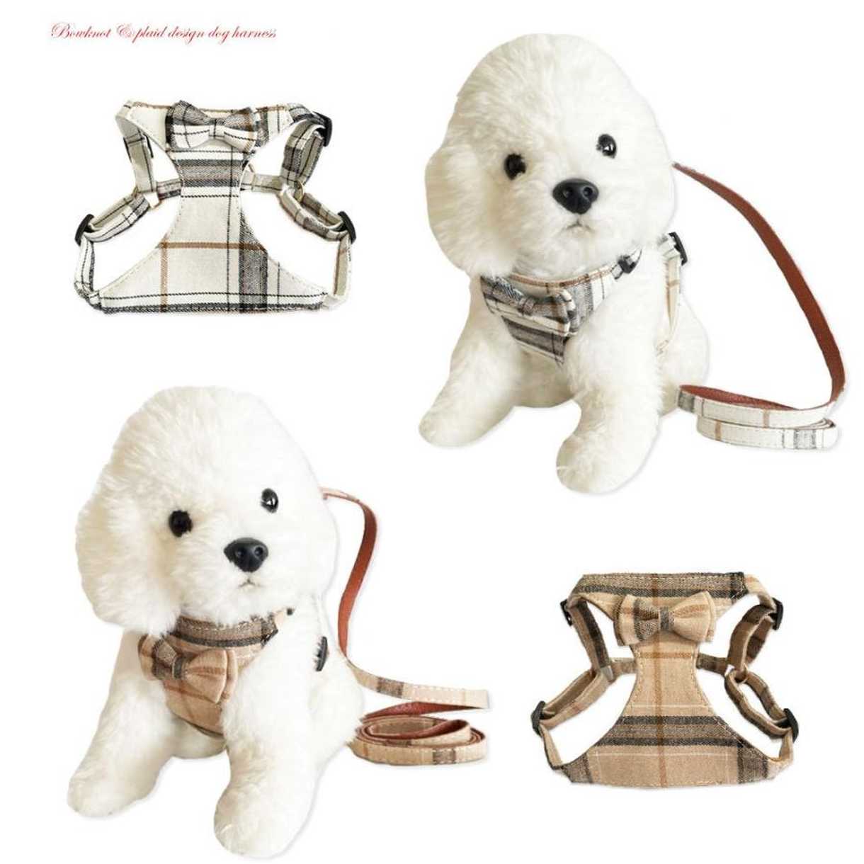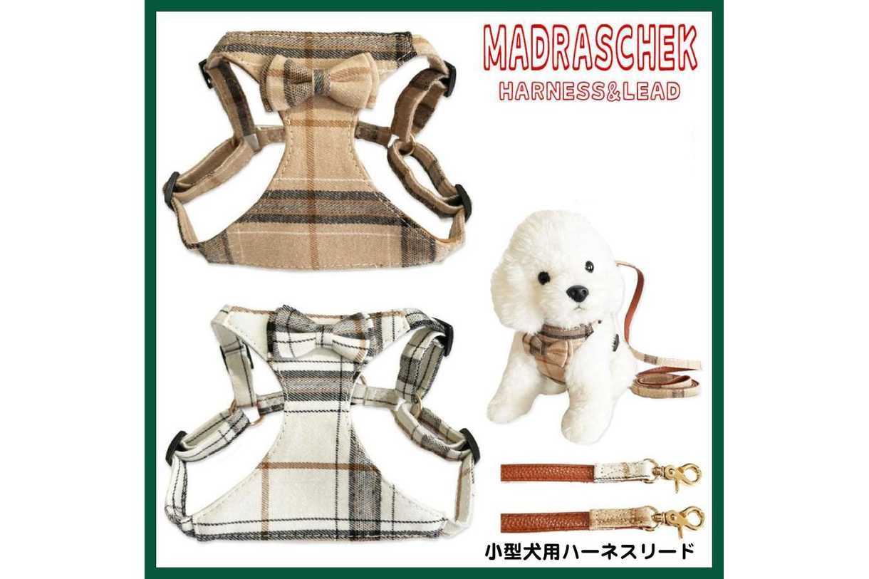 マドラスチェック柄&蝶ネクタイがかわいい♪小型犬用/ベスト型ハーネスリード