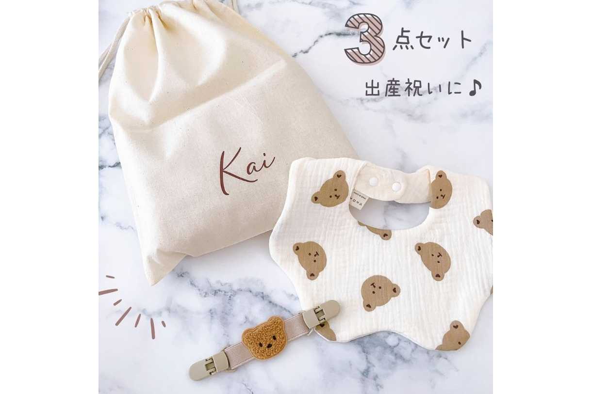 名入れ巾着も付いたCUTEな出産祝いセット〇