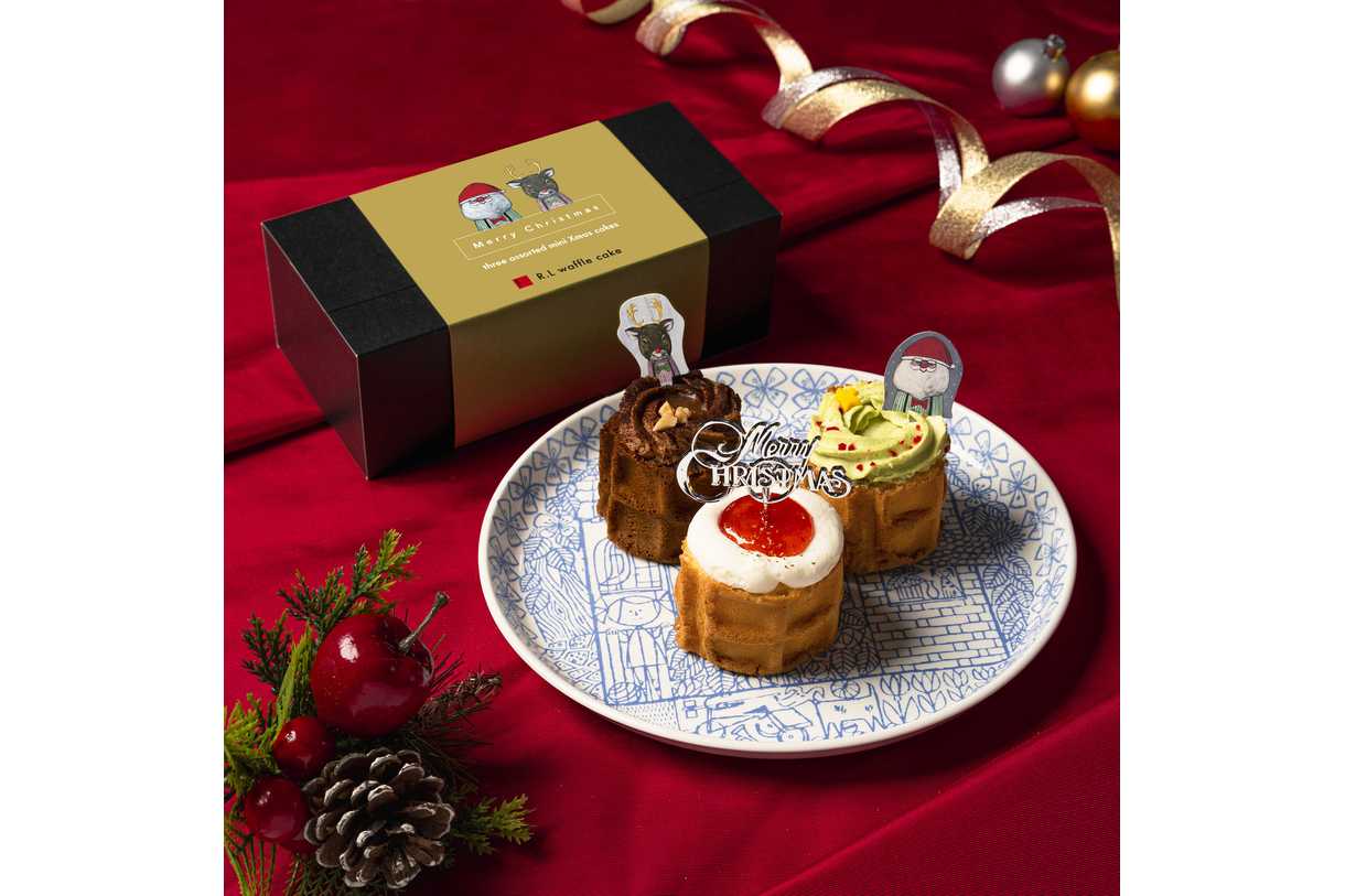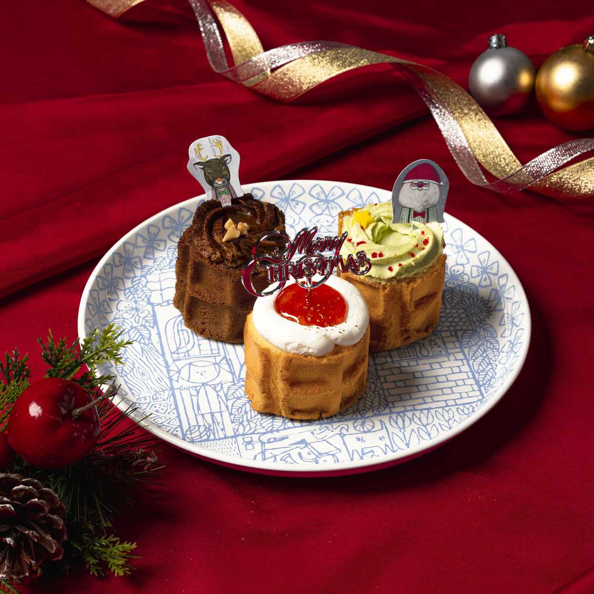 ひとり占めしたくなるようなミニサイズが可愛らしいワッフルのクリスマスケーキ3個セット。