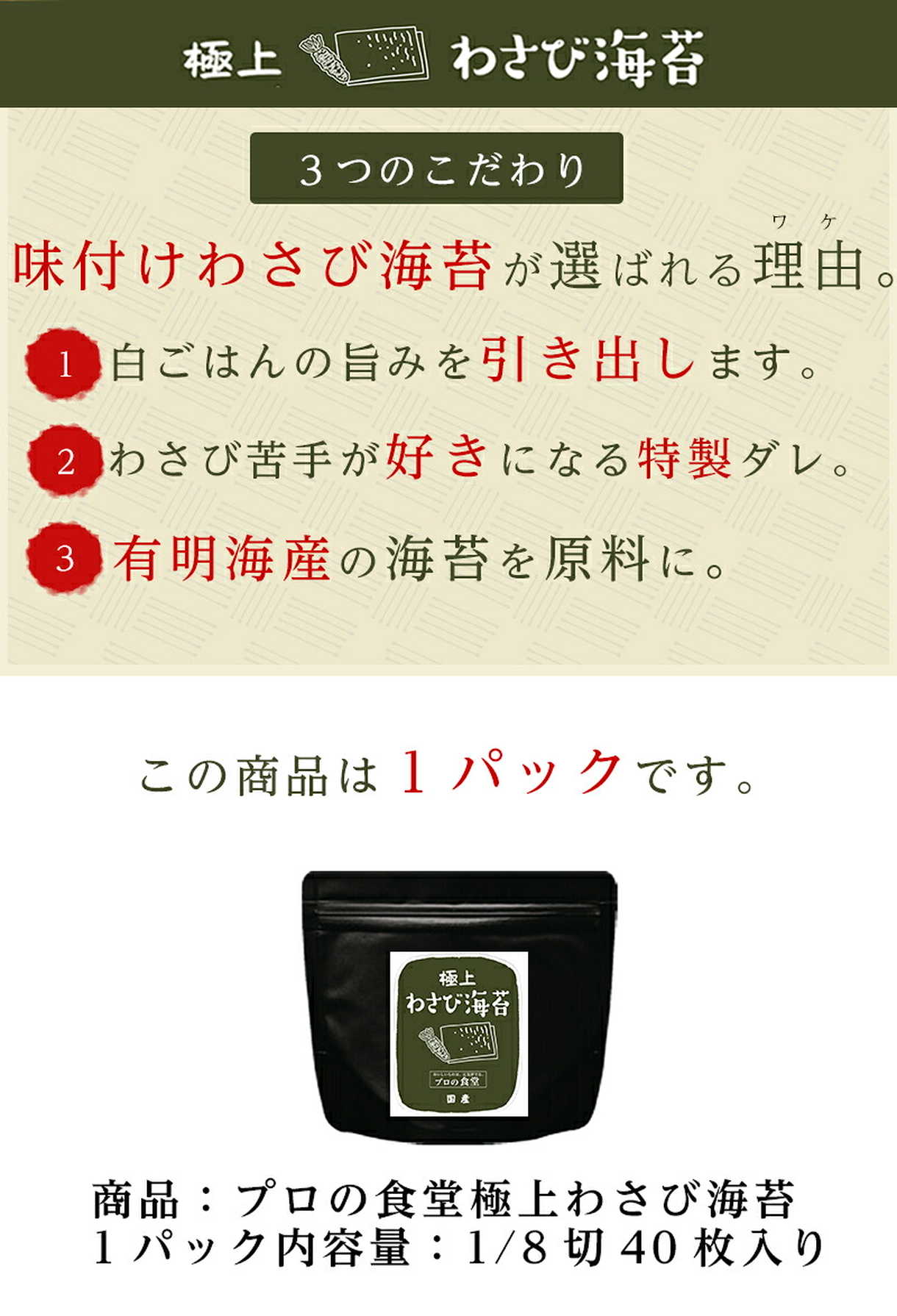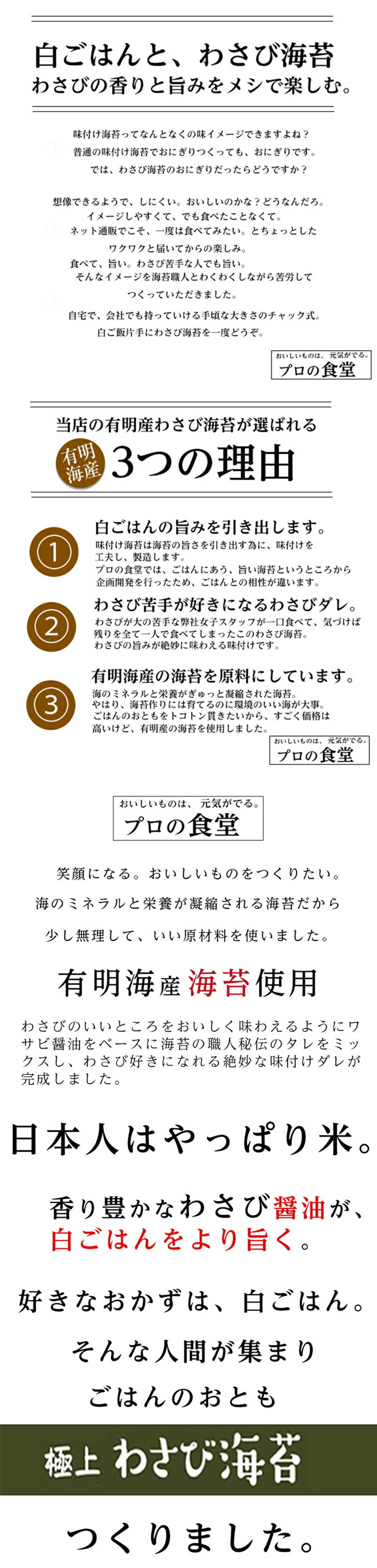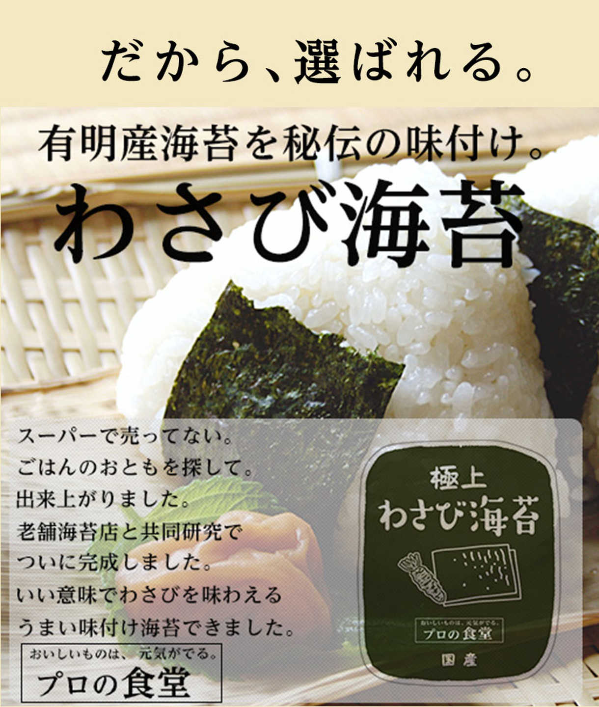 海苔の職人と時間を重ね、辿り着いたプロの食堂が自信を持っておすすめするわさび味付け海苔。