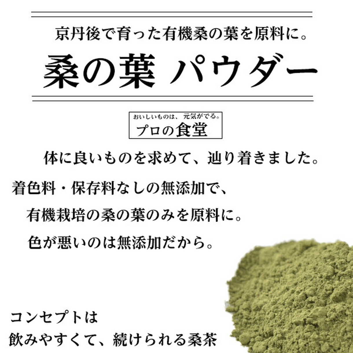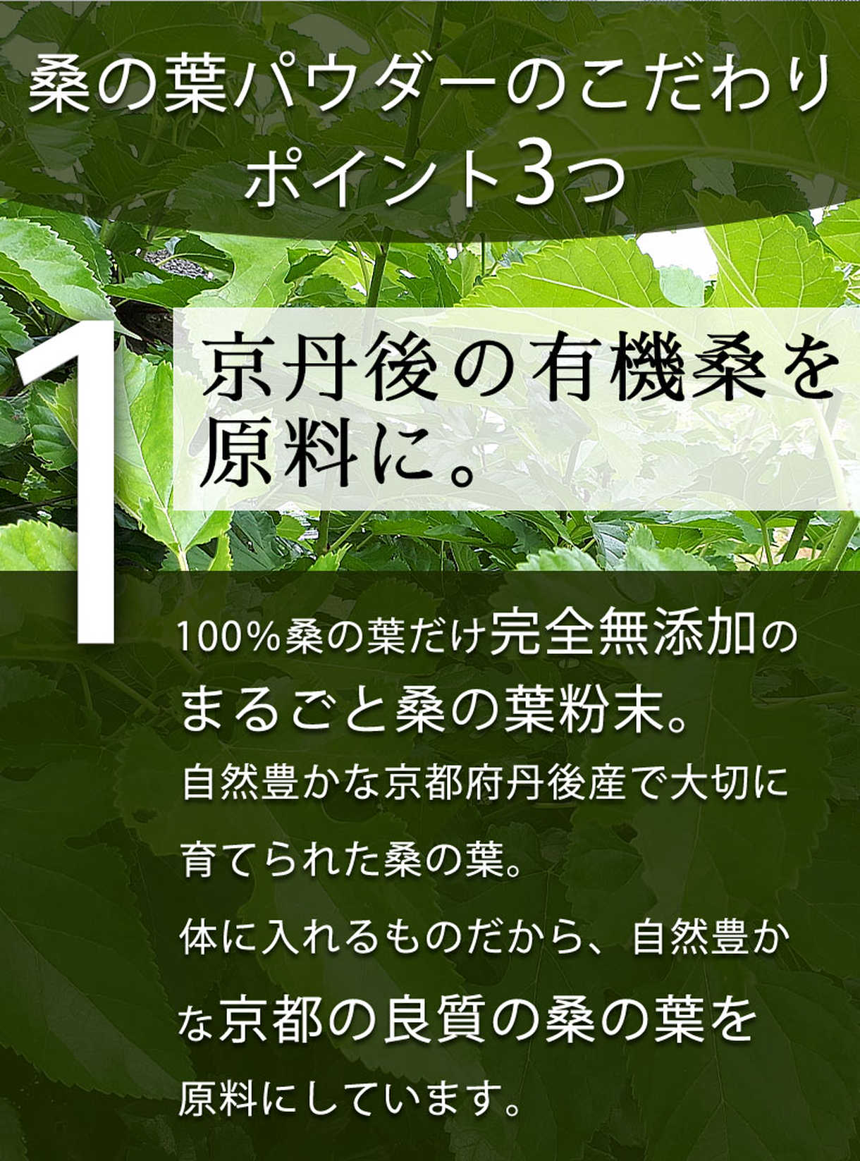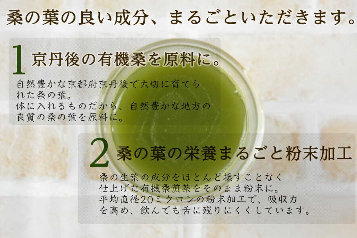 京都産の有機桑の葉を100%使用し、パウダーにした粉末タイプ。