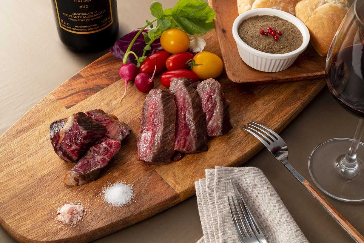 専用の熟成庫にて仕込まれた発酵熟成肉は、余分な水分は飛ばしつつ、旨みを湛えた結着水はお肉に閉じ込めることで、4つの特長「テンダネス(やわらかさ)」「フレーバー(特有の芳醇な風味)」「テイスティ(旨み)」「ジューシー(本来の水分)」が味わえ、従来のドライエイジングよりさらに深化しています。黒毛和牛本来の旨みをお楽しみください。岩塩2種と焼き方レシピ付。