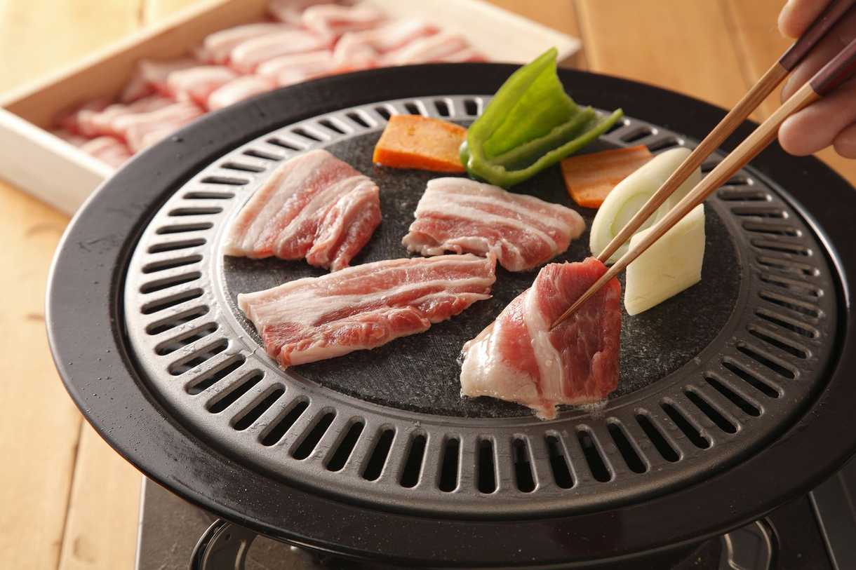 三重県産の銘柄豚さくらポークは指定された牧場で三元豚に加熱した植物性の飼料を与え育てています。脂に甘みがあり、豚臭さが少ないのが特長。焼肉で人気のバラ肉に岩塩が付いたセットです。