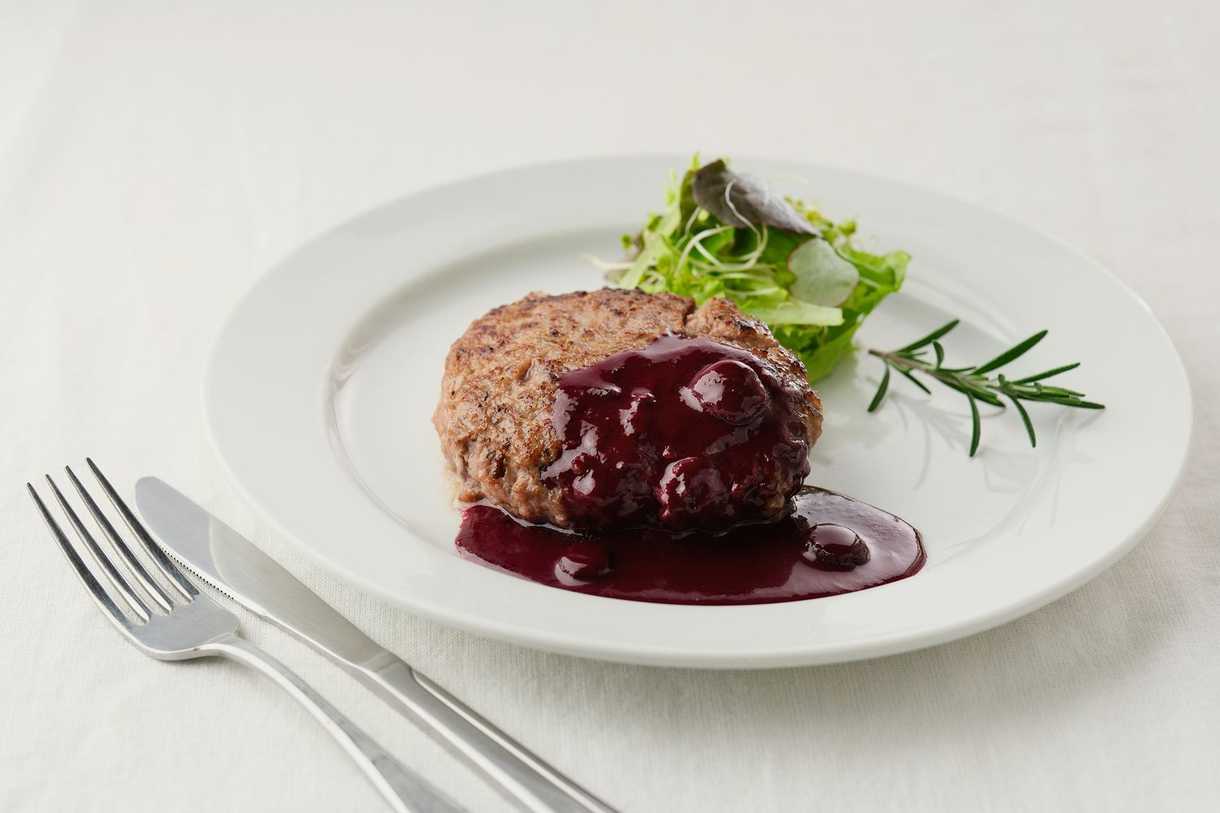 山口県萩市で生まれ育った長萩和牛を100%使用したハンバーグと、一日一組をフレンチ料理でもてなす「le-sorcier(ルソルシエ)」の橋本シェフが監修した地元山口県産ブルーベリーを使用したブルーベリーソースをセットにしてお届けします。