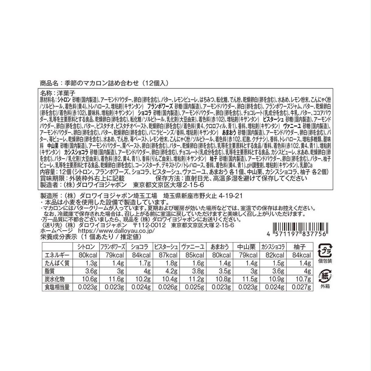 季節のマカロン入り詰め合わせ(12個入)