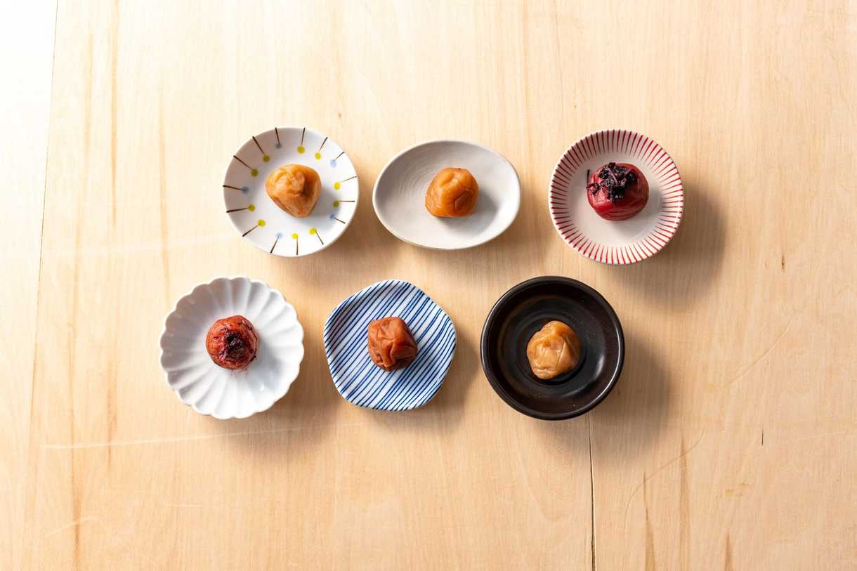 紀州南高梅の6種類の味を取り揃えました。うす塩味(塩分約6%)から白干梅(塩分約20%)まで、少しずつ違った味をお楽しみください。