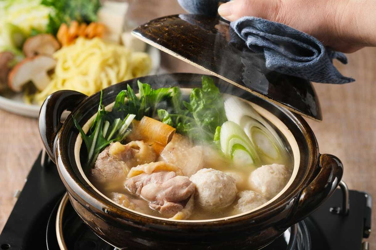 烏骨鶏をはじめ5品種の交配により生まれた大分のブランド地鶏「おおいた冠地どり」を、濃厚な鶏白湯スープ仕立ての鍋セットにしました。お好みの野菜を加え、お鍋を楽しんだ後は、〆のちゃんぽんで最後の一滴までスープをお楽しみください。