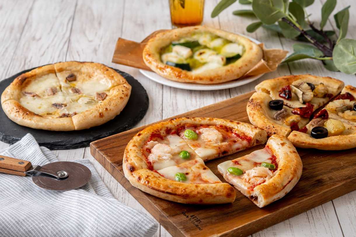 まるずわいがにとだだ茶豆のトマトピザ・アンチョビとローストガーリックのピザ・魚介たっぷりのマリナーラピザ・ローストいかのジェノベーゼピザ×各1枚(直径約15cm)